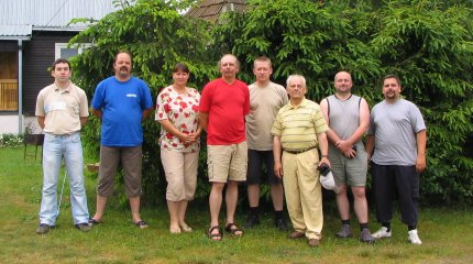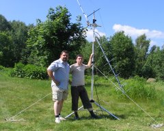 Weather has changed, we had rain here almost all afternoon and evening together with heavy thunder. So had to take down the 70 cm station again (PA right at the mast and not waterproof) and disconnected whole 2 m station aswell. Were visited by local hams from Druskininkai (see picture) and had a very interesting discussion. After that during the above mentioned 6 m opening good old Dave, G7RAU, called in to tell us 2 m was open via Sporadic E from U.K. to the Baltic region! Although still thunder we connected the 2 m station again to work G8LHT and G4CBW via ES. Then silence while the band was still open between YL and G. About 20 min later GM4CXM called in and briefly heard G3UTS calling us but QSO not complete, sri. Inbetween we heard all BBC channels on 3 m BC FM band, quite funny aswell. ;-) As there is still some thunder and S9+20 statics at times everything is again disconnected so chances are small to do some more Meteor Scatter this evening. Anyway, log is updated, see "Online Log" link on the left ...